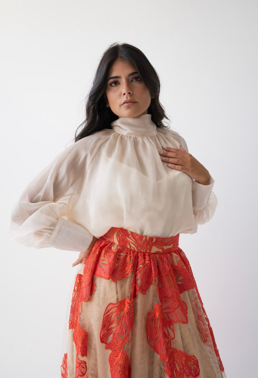 Set broderie skirt with organza top